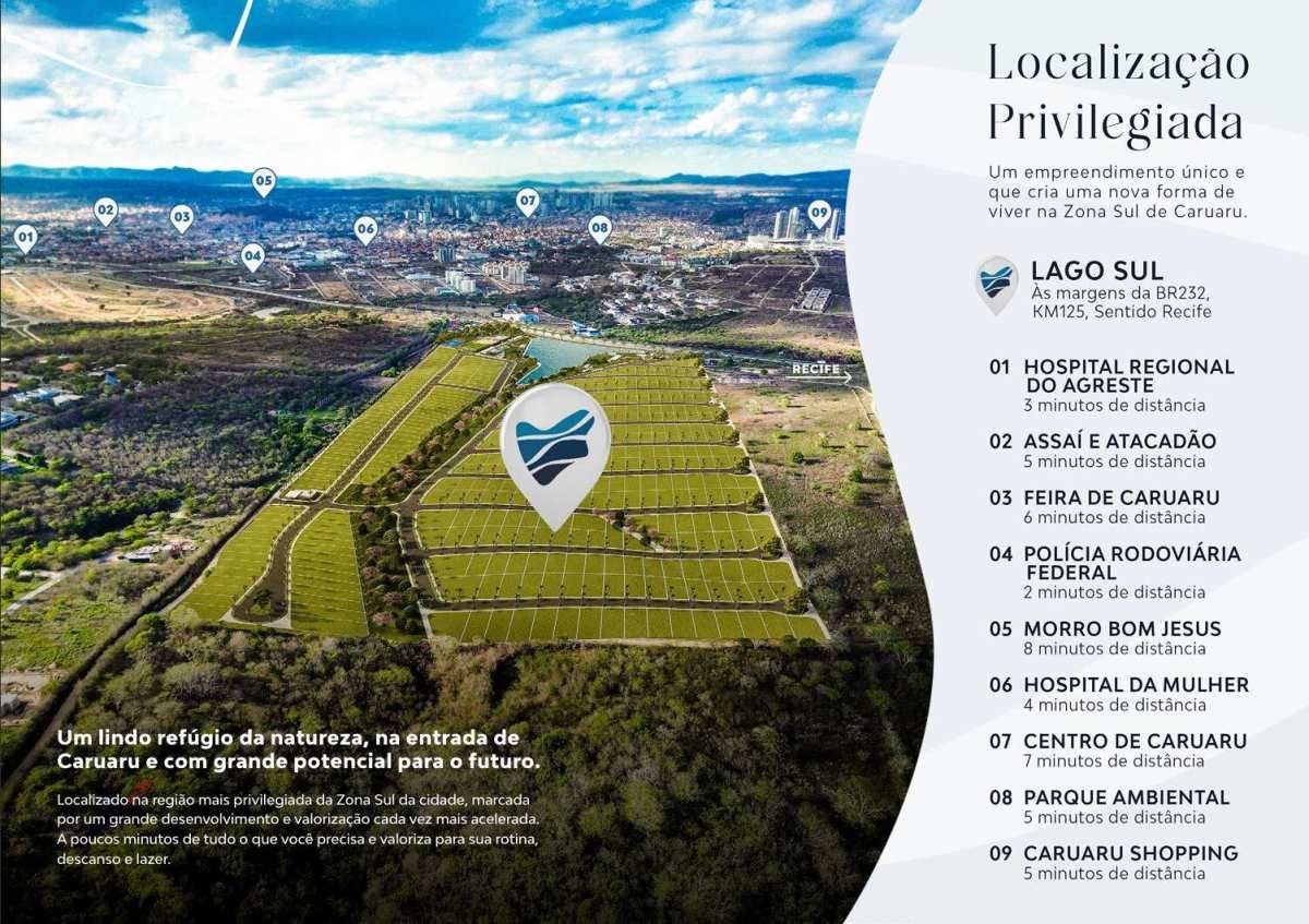 O Lago Sul – Ecoresidence é um empreendimento planejado que reúne modernidade, lazer completo e excelente localização em Caruaru. São 435 lotes residenciais e 1 lote comercial, com metragem a partir de 360m², oferecendo a oportunidade ideal para construir o seu futuro em um espaço valorizado e repleto de qualidade de vida.